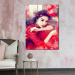 تابلو بوم چاپی لاویا طرح زن با شال و کلاه قرمز