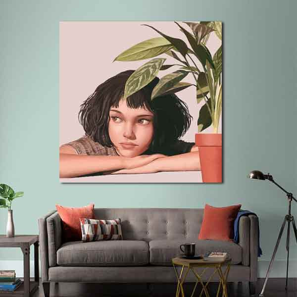 خانه دسته بندی تابلو بوم طرح دختر کنار گلدان کد ART-2775