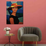 تابلو بوم طرح زن با کلاه کد LAV-1839