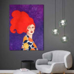 تابلو بوم چاپی لاویا طرح زن با شال و کلاه قرمز