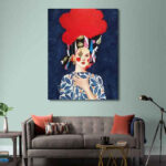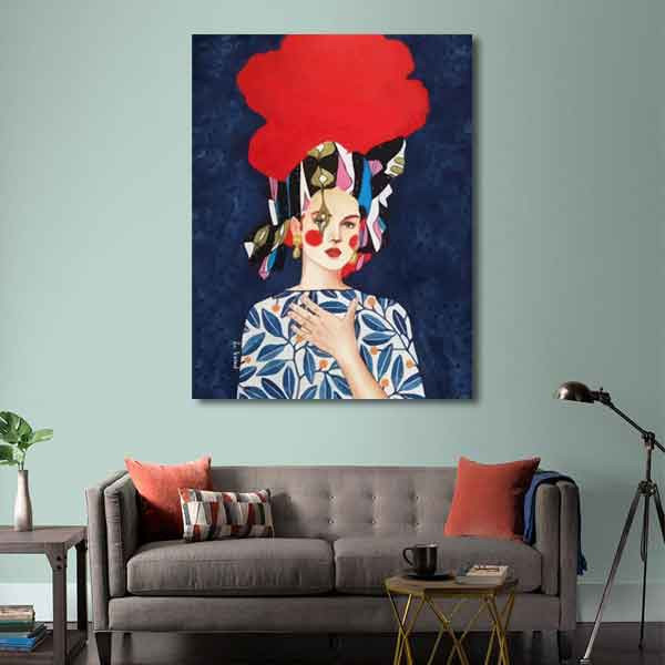 تابلو بوم چاپی لاویا طرح زن با شال و کلاه قرمز