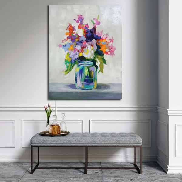 خانه دسته بندی تابلو بوم طرح گلدان گل رنگی کد LAV-1183