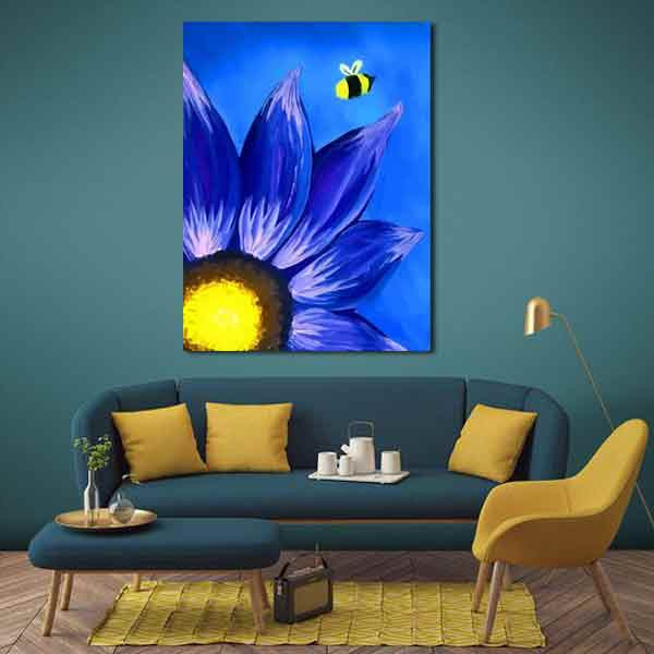 تابلو بوم طرح گل آبی کد ART-2803