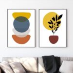 تابلو بوم چاپی لاویا دو تکه طرح مبنیمال رنگی و گلدان
