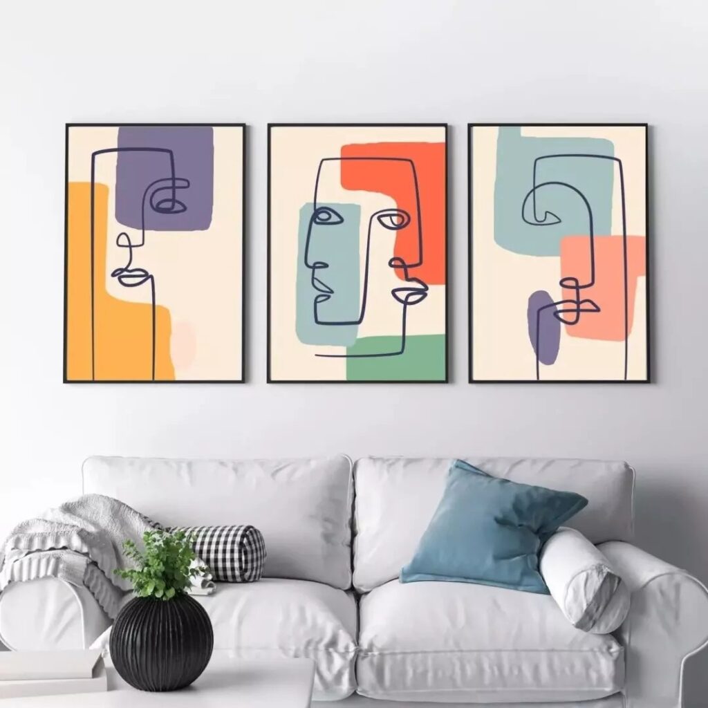تابلو بوم چاپی لاویا سه تکه طرح پرتره خطی ، لاین آرت سایز  50 در 70