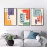 تابلو بوم چاپی لاویا سه تکه طرح پرتره خطی ، لاین آرت سایز 50 در 70