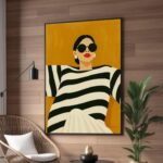 خانه دسته بندی تابلو بوم چاپی لاویا طرح زن با عینک و لباس راه راه
