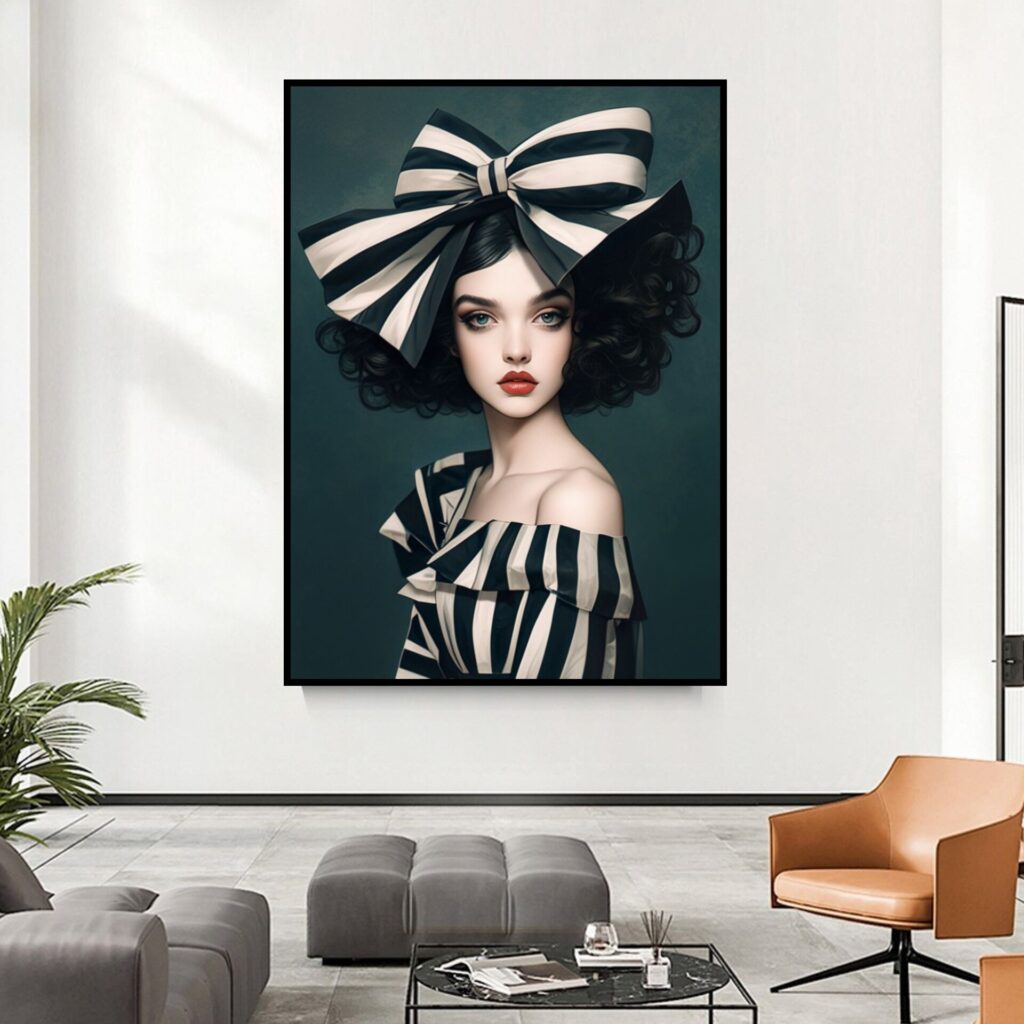تابلو بوم چاپی لاویا طرح زن با لباس راه راه