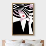 تابلو بوم چاپی لاویا طرح زن با کلاه خط خطی سیاه و سفیدذ
