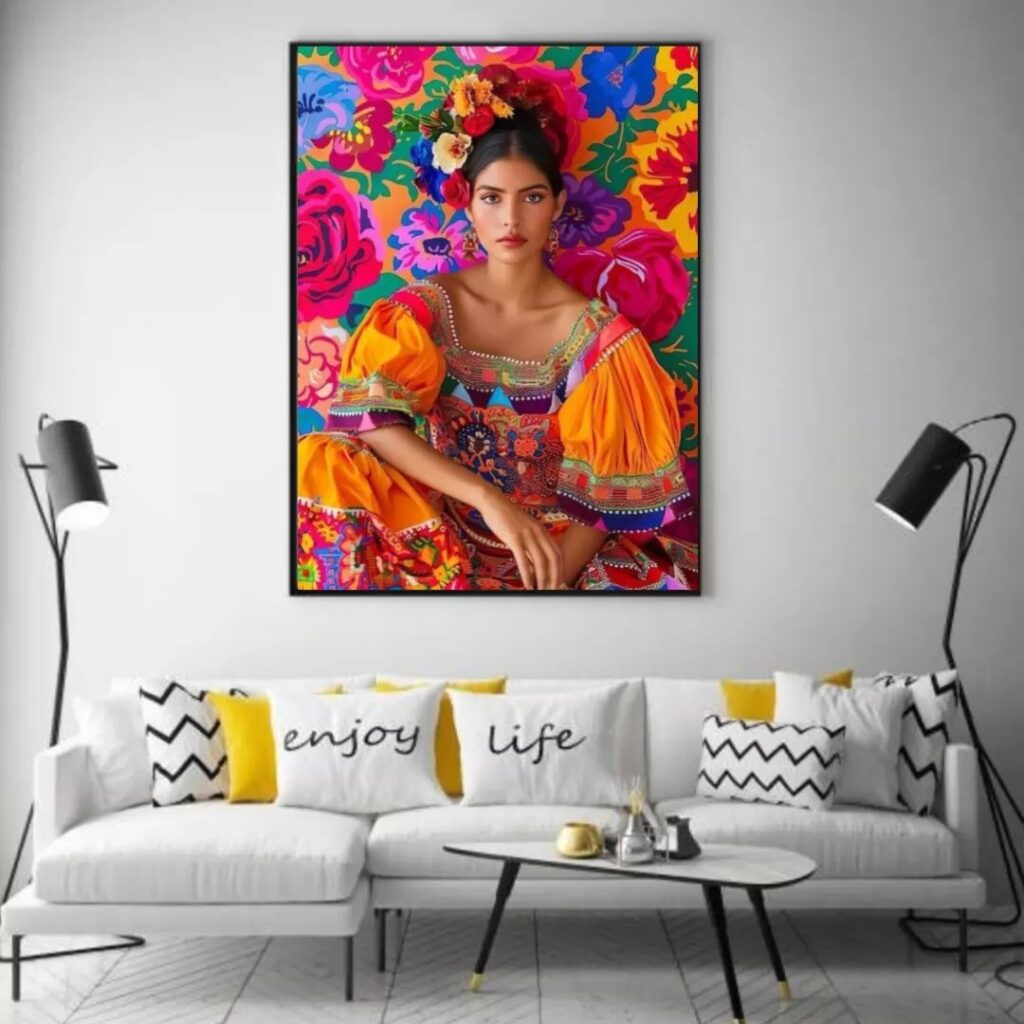 خانه دسته بندی تابلو بوم چاپی لاویا طرح زن و گلهای رنگی