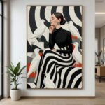 تابلو بوم چاپی لاویا طرح زن با شال و کلاه قرمز