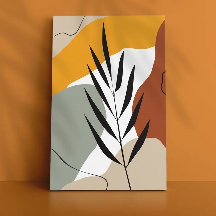 خانه دسته بندی تابلو بوم چاپی لاویا طرح مینیمال برگ مشکی ساده