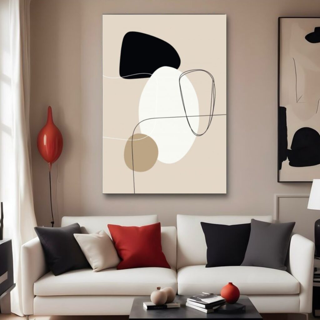 تابلو بوم چاپی لاویا طرح مینیمال کرم سفید مشکی