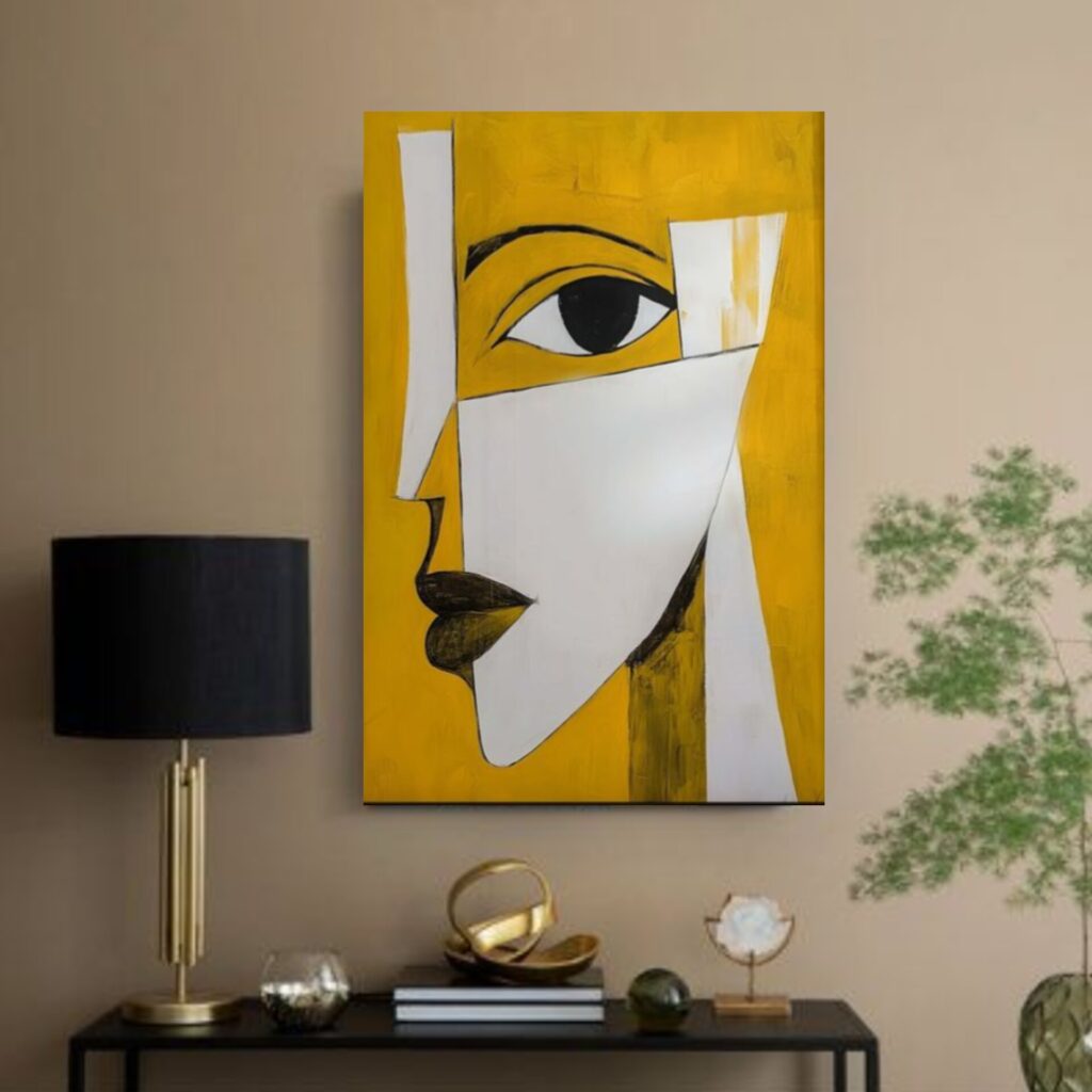 تابلو بوم چاپی لاویا طرح پرتره انتزاعی زمینه زرد تیره