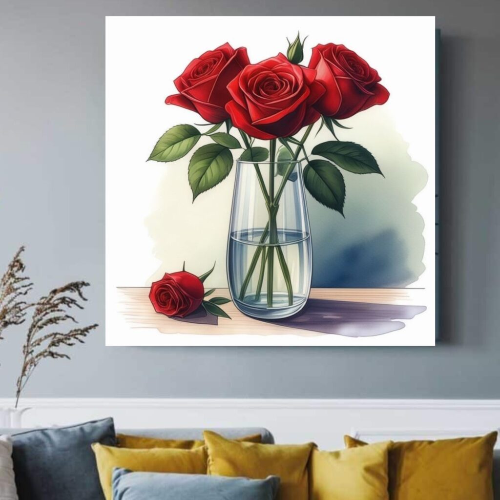 خانه دسته بندی تابلو بوم چاپی لاویا طرح گلدان گل رز قرمز
