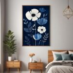 خانه دسته بندی تابلو بوم چاپی لاویا طرح گلهای سفید زمینه سورمه ای