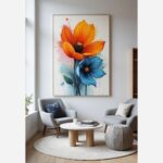 خانه دسته بندی تابلو بوم چاپی لاویا طرح گل آبی و نارمجی