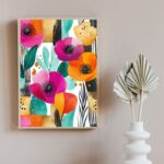 خانه دسته بندی تابلو بوم چاپی لاویا طرح گل شقایق سرخابی و نارنجی