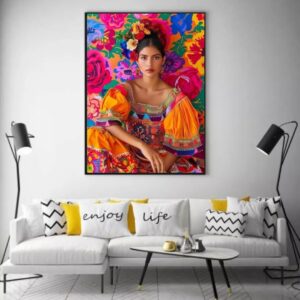 تابلو بوم چاپی لاویا طرح زن و گلهای رنگی