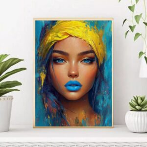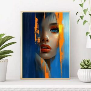 تابلو بوم چاپی لاویا طرح پرتره رنگی زن چشم آبی
