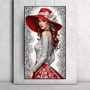 تابلو بوم چاپی لاویا طرح زن کلاه قرنز زیبا