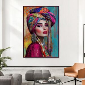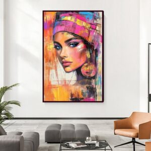تابلو بوم چاپی لاویا طرح پرتره رنگی زن جذاب