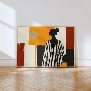 تابلو بوم چاپی لاویا طرح انتزاعی زن با لباس راه راه
