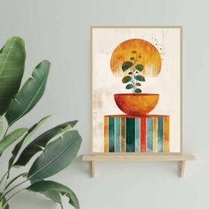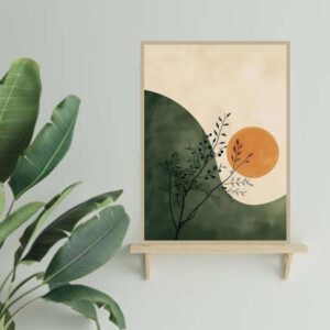 تابلو بوم چاپی لاویا طرح مینیمال خورشید ماه برگ