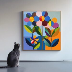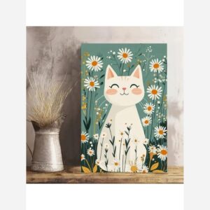 تابلو بوم چاپی لاویا طرح گربه و گل مخصوص اتاق کودک