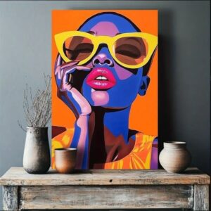 تابلو بوم چاپی لاویا طرح زن با عینک زرد
