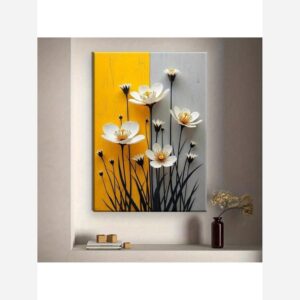 تابلو بوم چاپی لاویا طرح گل با زمینه زرد و طوسی