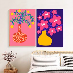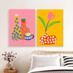 تابلو بوم چاپی لاویا دو تکه طرح گلدانهای کارتونی فانتزی 1