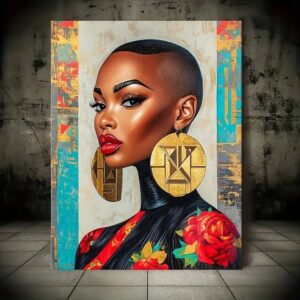 تابلو بوم چاپی لاویا طرح زن سیاهپوست با گوشواره