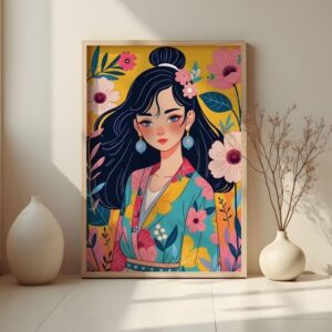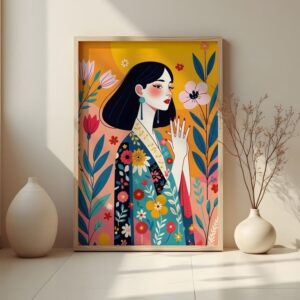 تابلو بوم چاپی لاویا طرح فانتزی زن در میان گلها