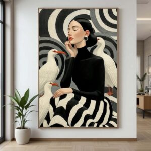 تابلو بوم چاپی لاویا طرح زن و پرنده های سفید