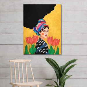 تابلو بوم مدل چاپی طرح زن و گل لاله کد LAV-1990