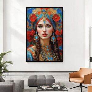 تابلو بوم چاپی لاویا طرح پرتره رنگی زن زیبا
