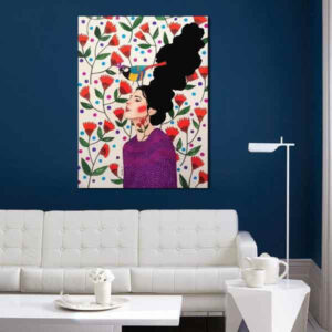 تابلو بوم طرح زن و پرنده کد LAV-1841